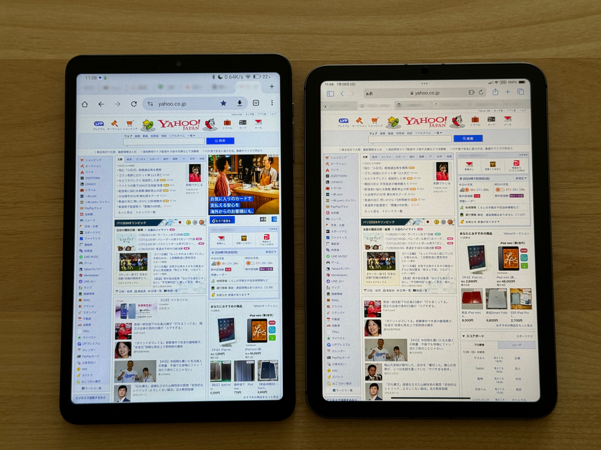 画面のサイズ比較です。左ALLDOCUBE 右iPad mini6。